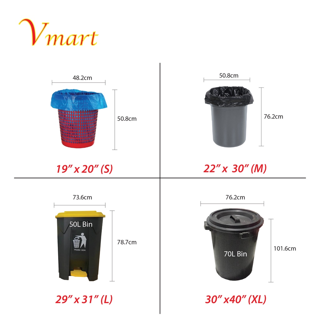 Beg Sampah Plastik 50 x 75 cm 1 pek 14 helai. 2 Uruskan sampah-sampah berbeza. Karung sampah saiz besar yg ditebuk lubang pd bhgian bawah ikut saiz paip.
